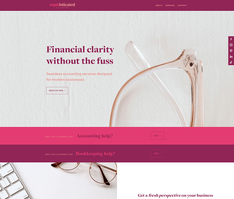 Using her signature pinks and burgundy, we designed a sleek, user-friendly site with clear CTAs and custom visuals. A tailored social media plan keeps her looking consistent (and booked) across platforms.