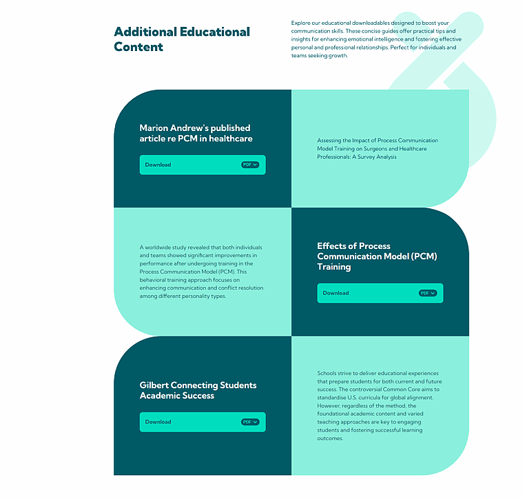 With a monogram logo shaped like an infinity symbol, custom icons, and a vibrant teal palette, the visual identity is both playful and professional. The website pairs clean design with clear messaging, guiding users to connect, thrive, and lead.